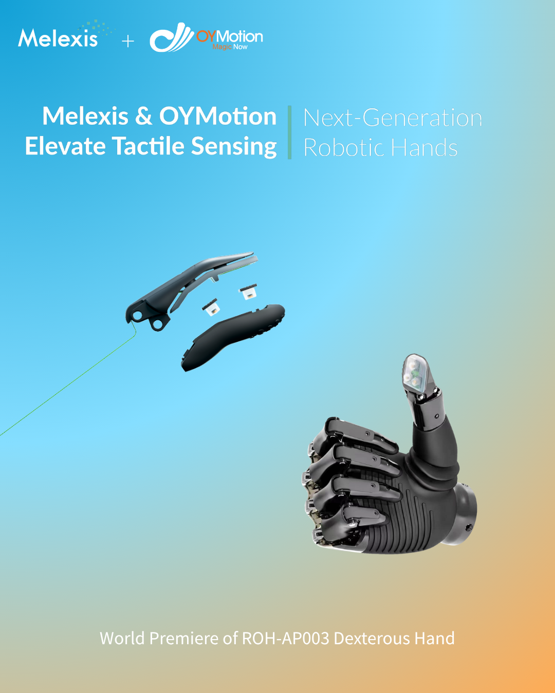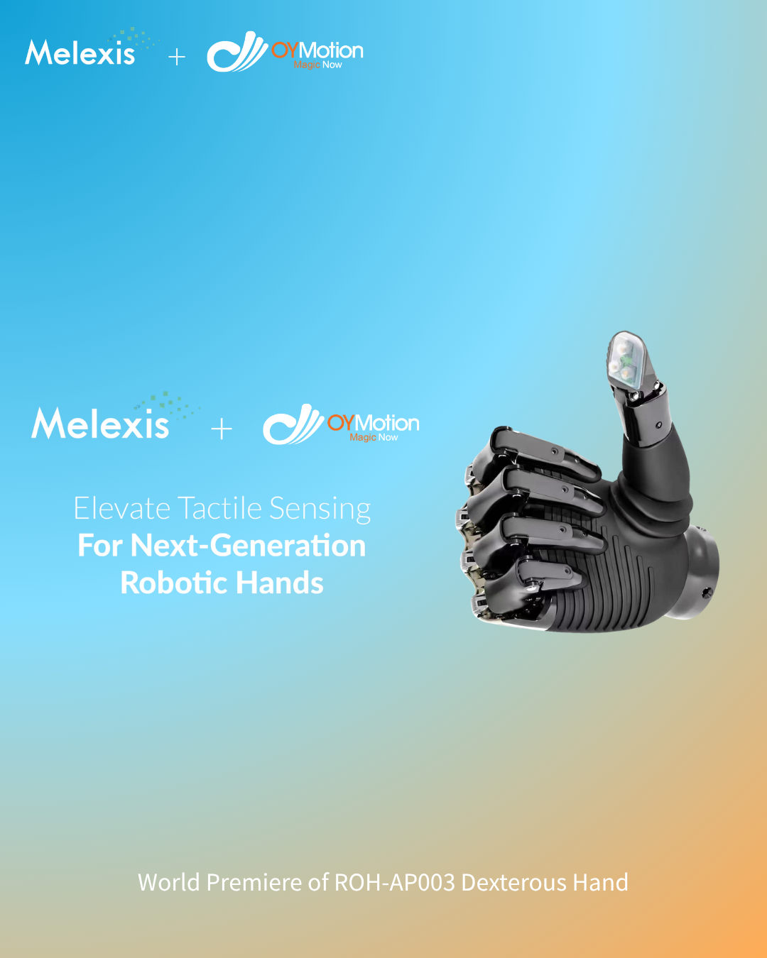 Back to listIn Hanover, Germany, OYMotion made a significant debut at the Hannover Messe, a globally influential event in the industrial sector. OYMotion collaborated with Melexis to develop a new generation of agile hand platform, featuring Melexis’ Tactaxis technology for the first time worldwide. ™ The ROH-AP003, a state-of-the-art high-end tactile dexterous hand featuring industrialized 3D magnetic haptic sensing technology, represents the latest generation of OYMotion’s products. OYMotion will continue to strengthen collaboration with global ecosystem partners and drive the global implementation of embodied intelligent haptic technology.